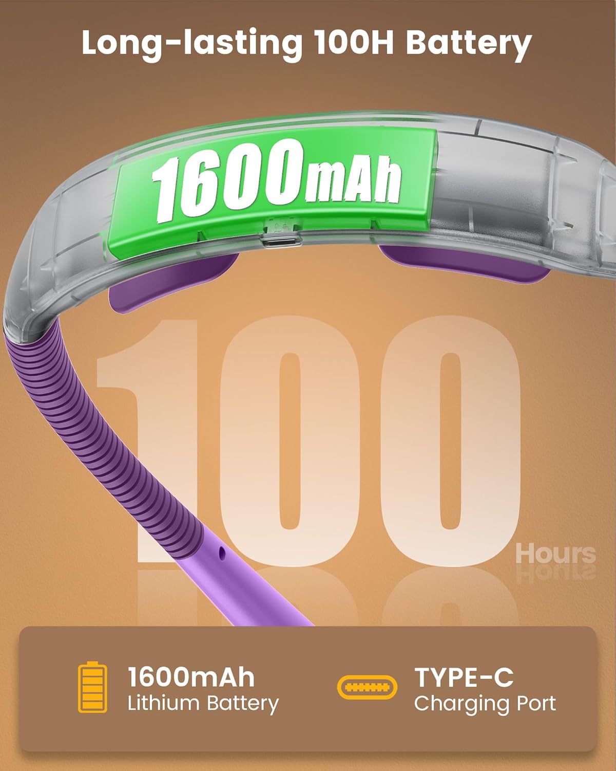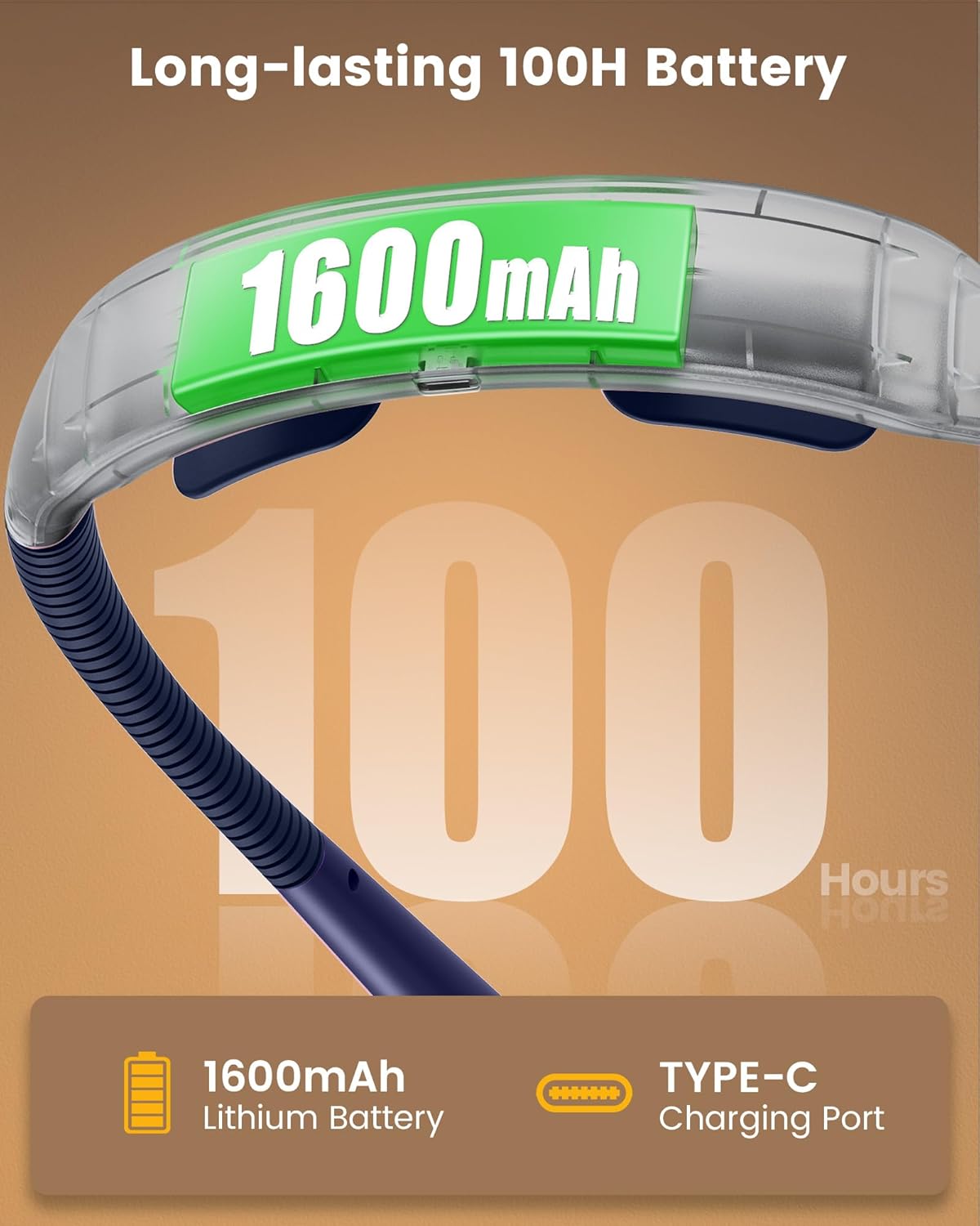 • [Rechargeable for 100hrs Long-lasting] This rechargeable reading light is equipped with a powerful 1600mAh battery. offering an impressive standby time of 10 to 100 hours. This means you can enjoy reading for up to 6 months if you read 30 minutes daily. With USB-C charging. you’ll benefit from faster and safer power-ups. while four battery indicators ensure you’re never caught off guard by a sudden power-off.